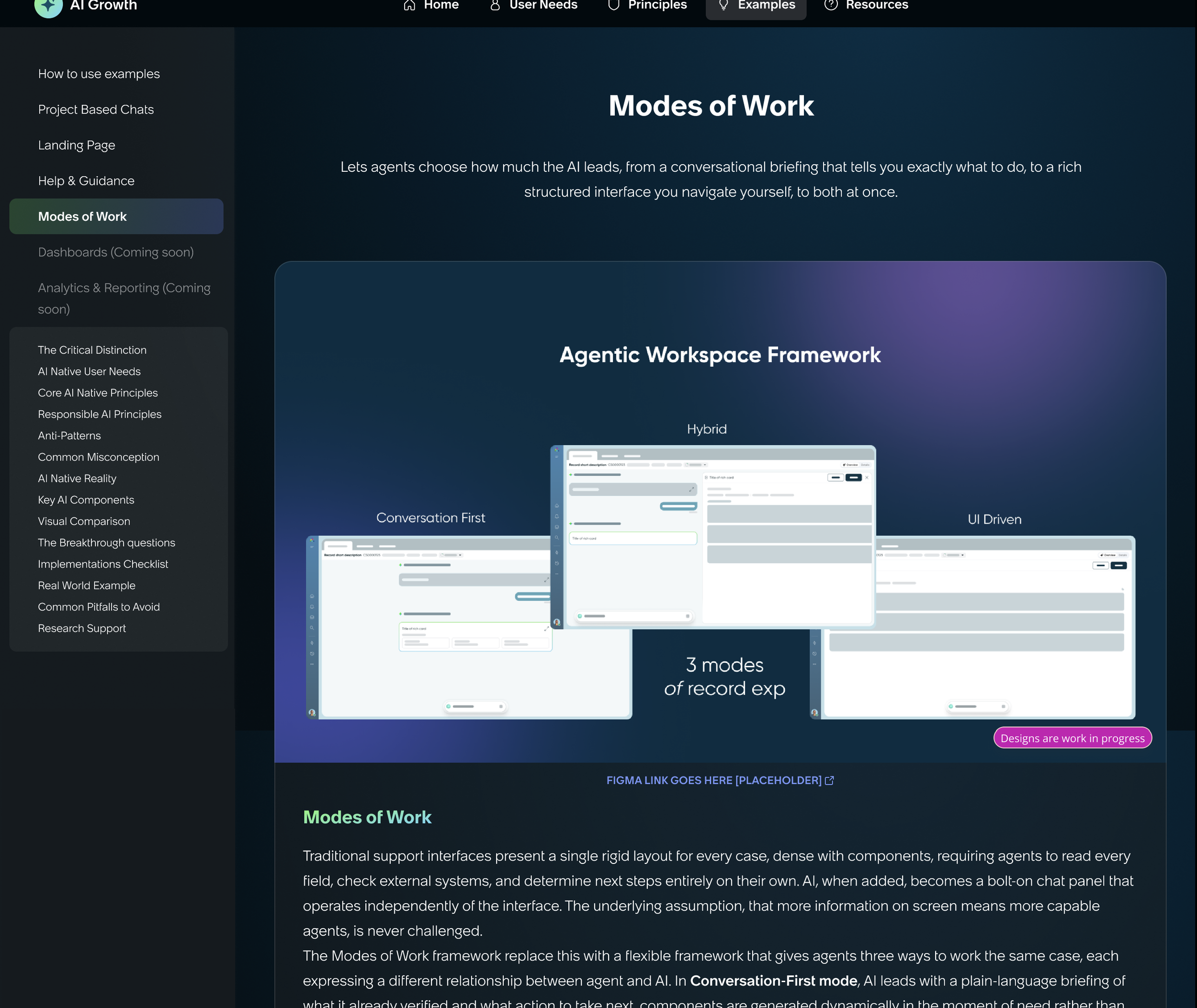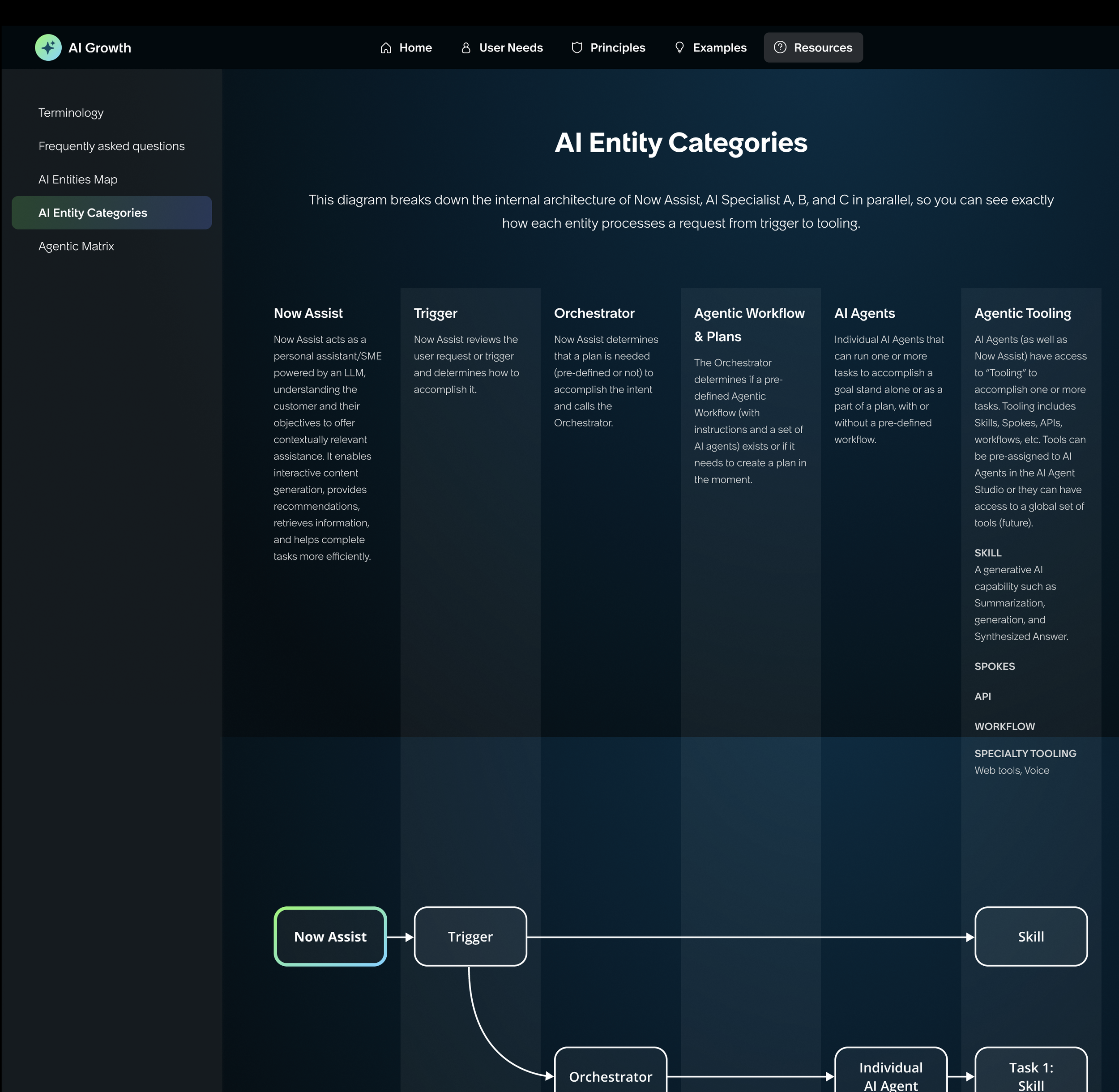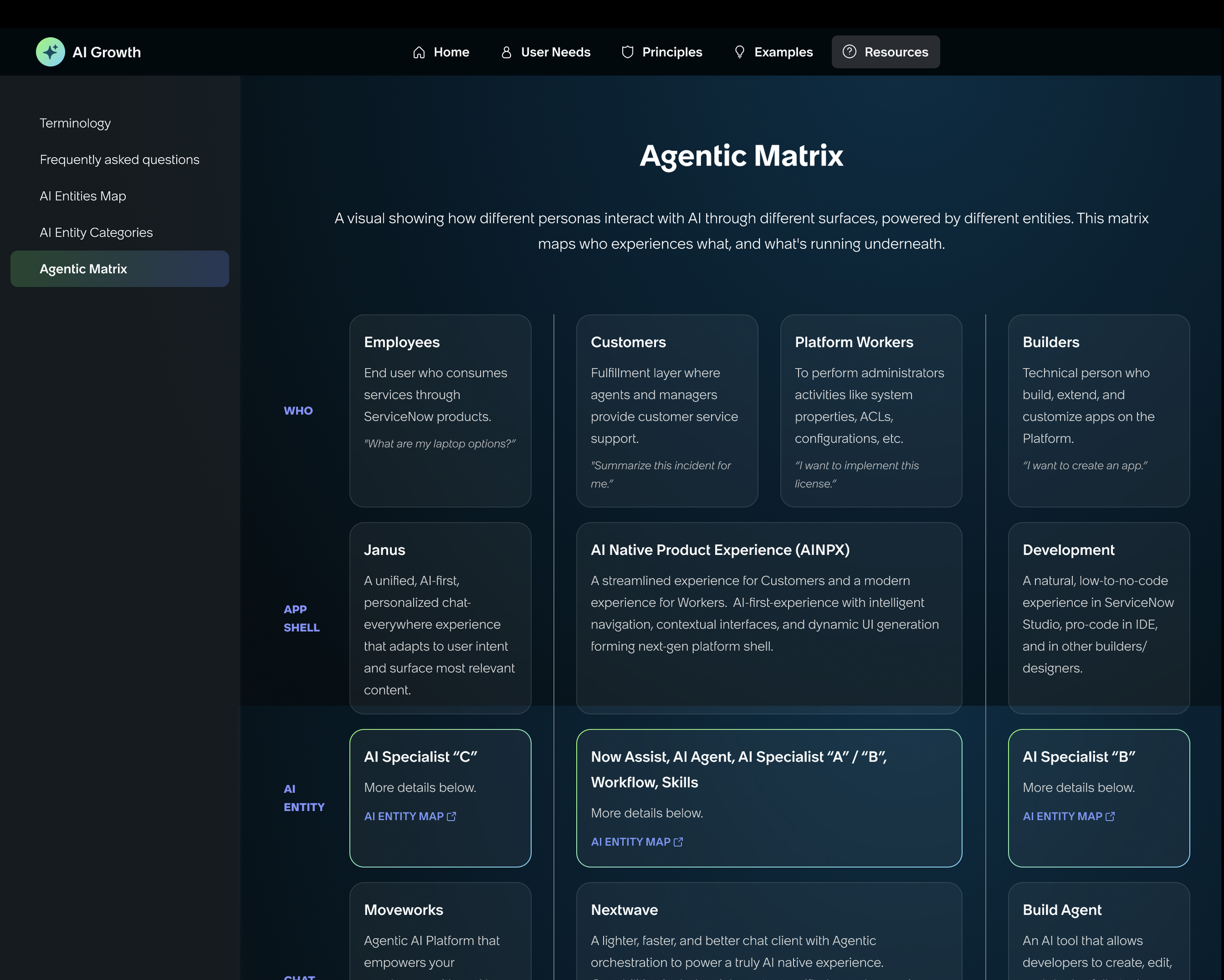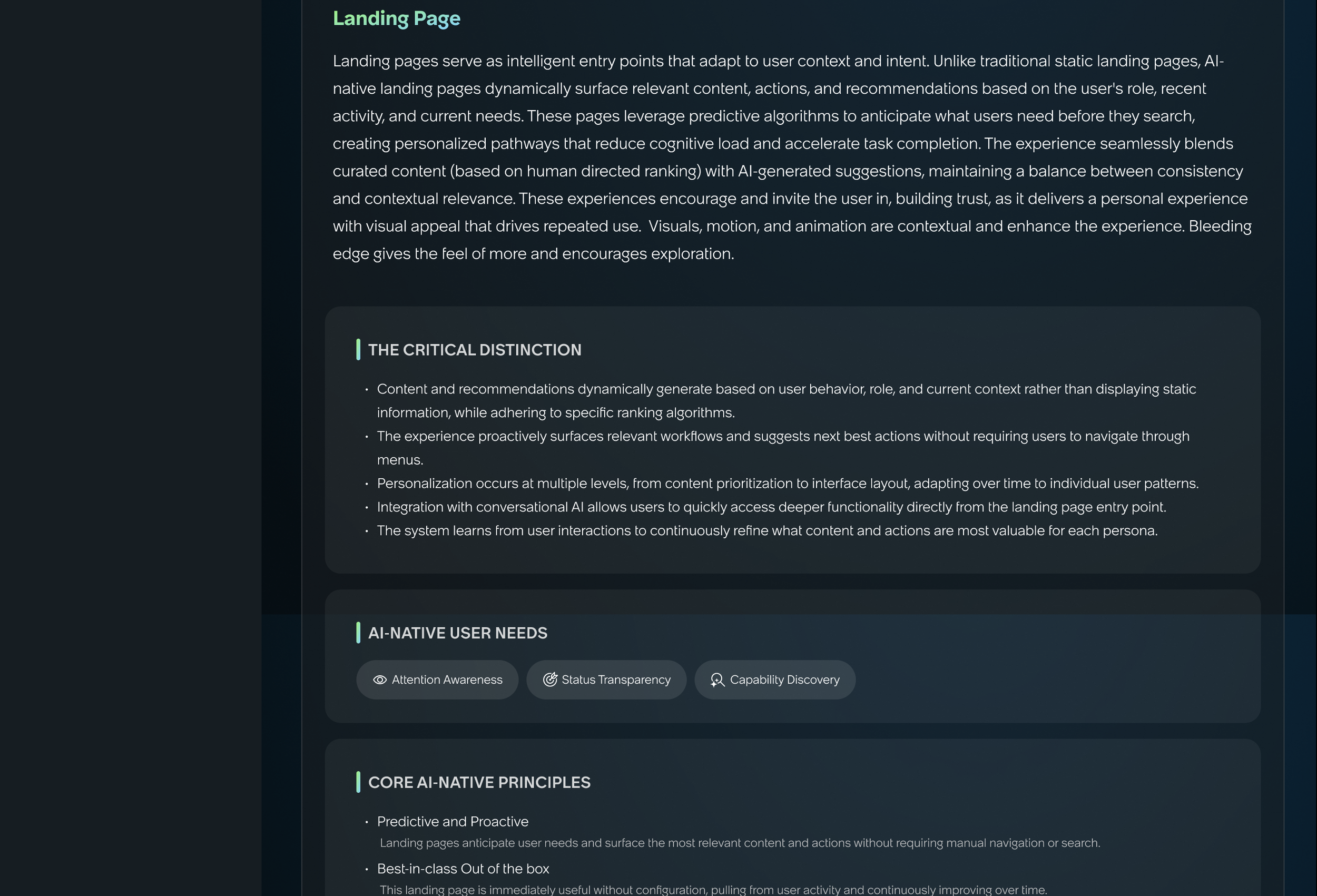 ServiceNow declared itself AI-native. That meant the design team needed a framework for what that actually looks like in practice. I created standards for designing AI-powered features, with practical guidance for when AI adds value and when it gets in the way. Established within 90 days of joining.